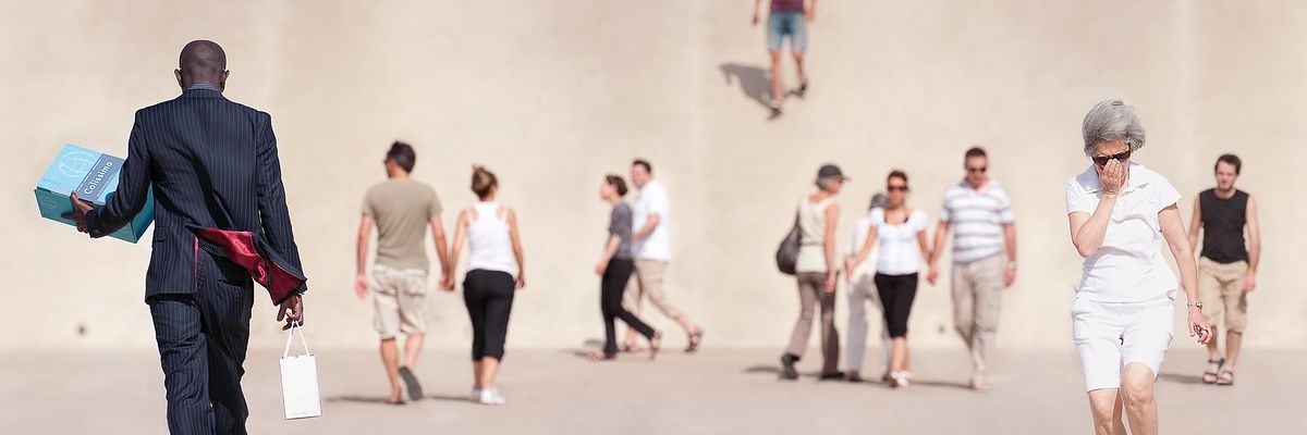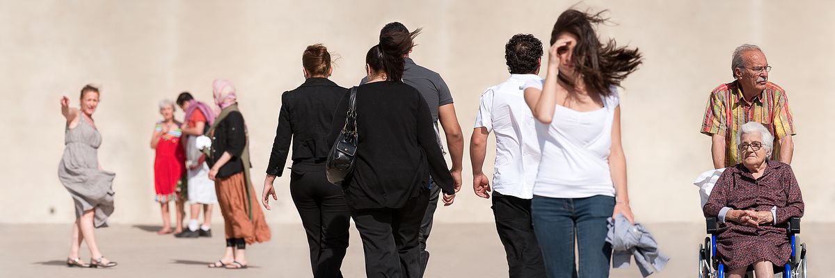 It could be one of us, them or you, fixed in time and space. We walk pass each other, we meet, our diverse cultures are emphasized, mixed and intertwined on the way to everyday life.